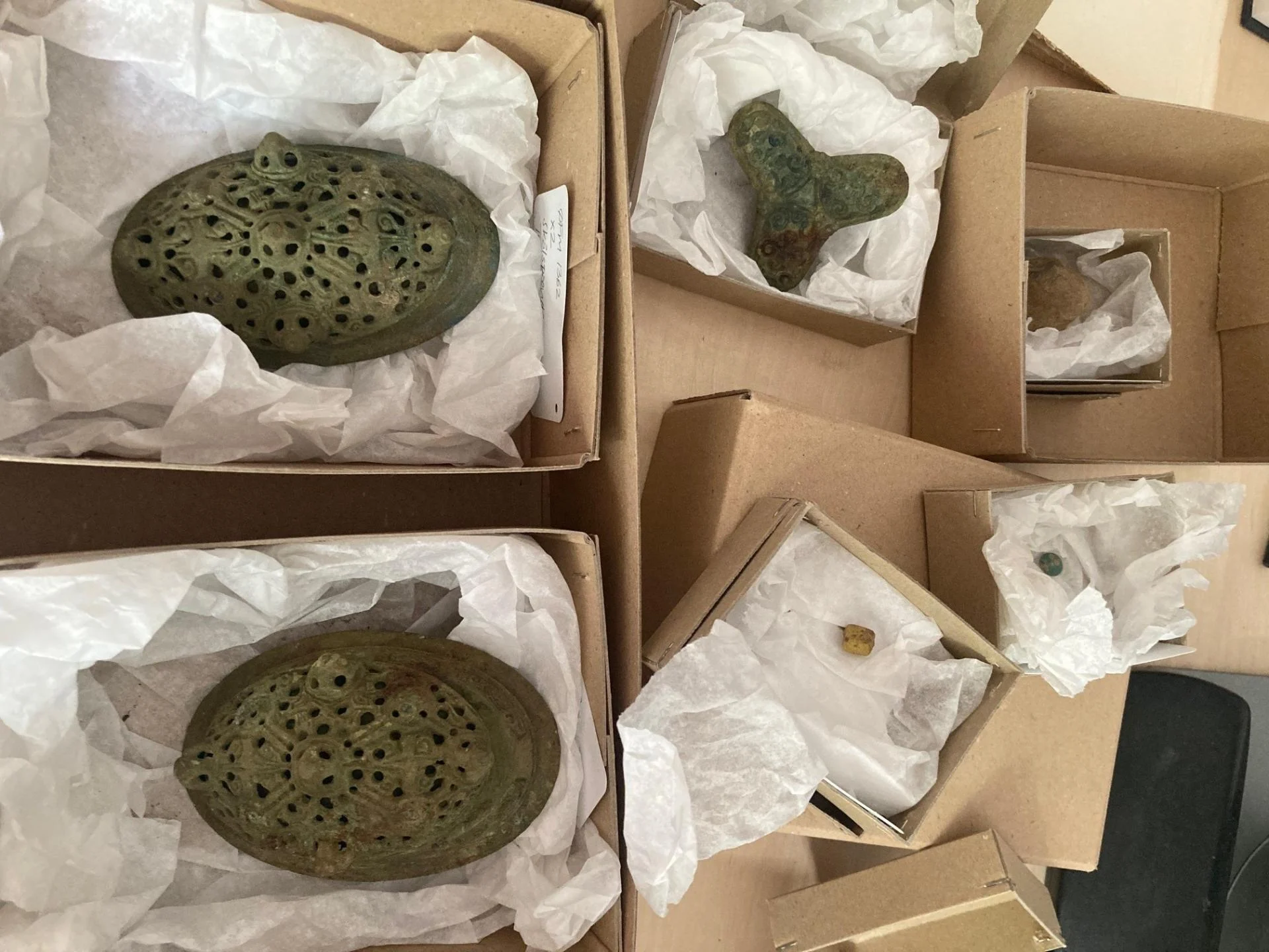 Un poids en étain et divers outils en fer ont également été découverts.