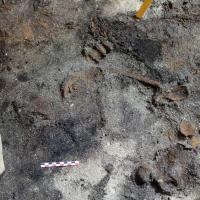 Un peigne et plusieurs fragments d’os ont été découverts. "Il nous est impossible de déterminer le sexe du squelette d’après ses os. Quelque chose est arrivé à cette tombe; tous les grands os sont brisés. Il va nous falloir les examiner pour voir s'ils présentent des traces d’entailles", a précisé l'archéologue. De nombreux indices montrent en effet qu'un incident, dont la nature reste à définir, a gravement endommagé la tombe, et les os en particulier.